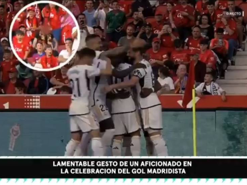 Las cámaras de Movistar + captaron a un joven aficionado realizando el gesto del mono y lanzando algo al terreno de juego tras el gol de Tchouaméni para el Real Madrid en Son Moix.