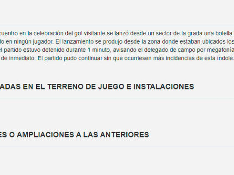 "El lanzamiento se produjo desde la zona donde están ubicados los seguidores del club local. Por ese motivo el partido estuvo detenido durante 1 minuto, avisando al delegado de campo por megafonía que el lanzamiento de objetos debía cesar de inmediato", concluye el árbitro murciano.