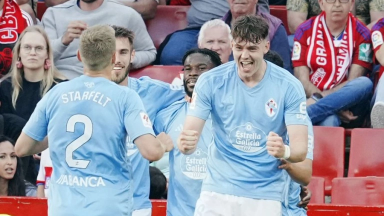 El Celta certificó su permanencia una temporada más en Primera División al ganar este domingo en el Nuevo Los Cármenes por 1-2 al Granada, que, ya descendido, sumó su cuarta derrota consecutiva. Tras una primera mitad de dominio local, dos goles en apenas dos minutos en el segundo tiempo del noruego Jorgen Strand Larsen y del francés Jonathan Bamba fueron suficientes para que el Celta lograra su objetivo, pese a que hubo emoción en los últimos minutos tras el gol para los locales del uruguayo Bruno Méndez, con un penalti fallado por Antonio Puertas en el minuto 97.