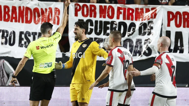 La primera parte del duelo entre Rayo Vallecano y FC Barcelona estuvo marcado por el contratiempo que hubo con el VAR. En el tanto que metió de penalti Lamine Yamal, Busquets Ferrer, colegiado del choque, no pudo hablar con la sala VAR ya que la comunicación era prácticamente nula. Eso sí, los árbitros que estaban en Las Rozas sí que tenían imágenes de todo lo que estaba sucediendo en el terreno de juego del Estadio de Vallecas.
