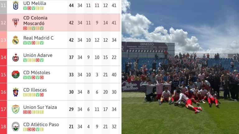 Y es que faltaba por decidirse quién acabaría 13º y tendría que jugar el playoff de permanencia si Real Madrid C o Colonia Moscardó. El filial blanco tenía que ganar en casa al Illescas y esperar que no lo hiciera el equipo de Javi Poves en el campo del Guadalajara, primer clasificado y que no había perdido en casa en toda la temporada.