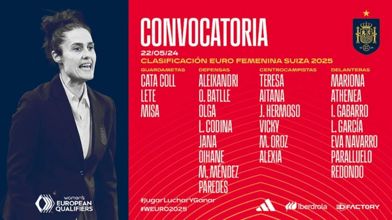 La actual campeona del mundo, líder de su grupo tras sus dos triunfos ante Bélgica (0-7) y Chequia (3-1), visitará en Velje a Dinamarca, su teórico principal rival por el primer puesto, el 31 de mayo, y luego le recibirá en el Heliodoro Rodríguez López de Santa Cruz de Tenerife el 4 de junio. Las 24 jugadoras seleccionadas arrancarán la concentración el próximo lunes 27 de mayo en la Ciudad del Fútbol de Las Rozas (Madrid).