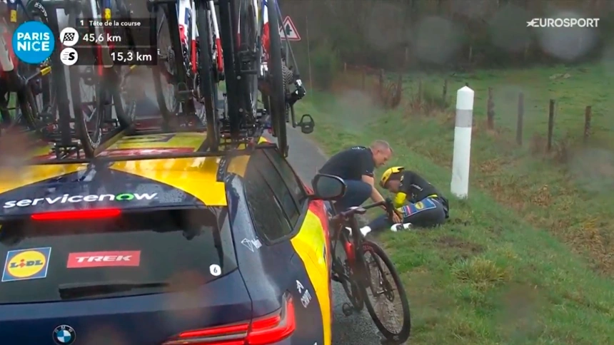El español Juan Ayuso (Lidl Trek) se ha visto obligado a retirarse de la París-Niza en el trascurso de la cuarta etapa debido a una caída sufrida a 47 km de meta de la jornada que une Bourges y Uchon, de 195 km.
