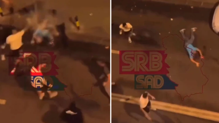 Varios jugadores del Partizan, envueltos en una pelea frente a una discoteca de Belgrado; uno de ellos le rompió una botella en la cabeza a un joven