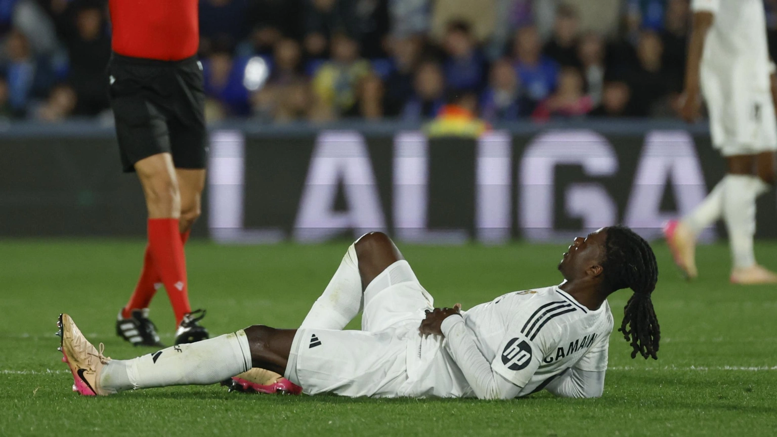Eduardo Camavinga se lesionó en el minuto 87 del encuentro entre el Getafe y el Real Madrid en el Coliseum. El madridista saltó para evitar una entrada de Luis Milla y se hizo daño en la pierna. Intentó seguir sobre el césped porque el equipo había agotado las ventanas y no podía hacer más cambios, pero tuvo que marcharse cojeando y con grandes signos de dolor.