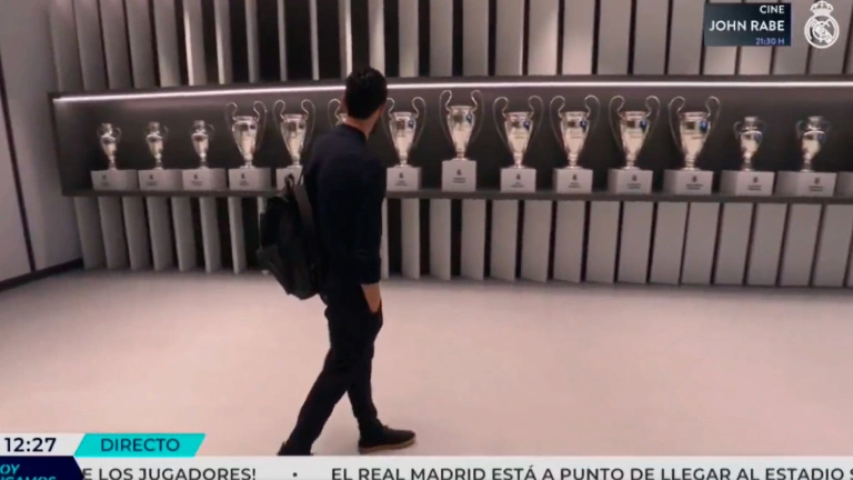 El propio Arbeloa dejó una de las imágenes de la previa al entrar en el Santiago Bernabéu. Poco antes de las 12:30h, las imágenes de Real Madrid Televisión mostraron cómo el nuevo entrenador blanco se quedó mirando a las Copas de Europa ganadas por el club merengue en su historia.