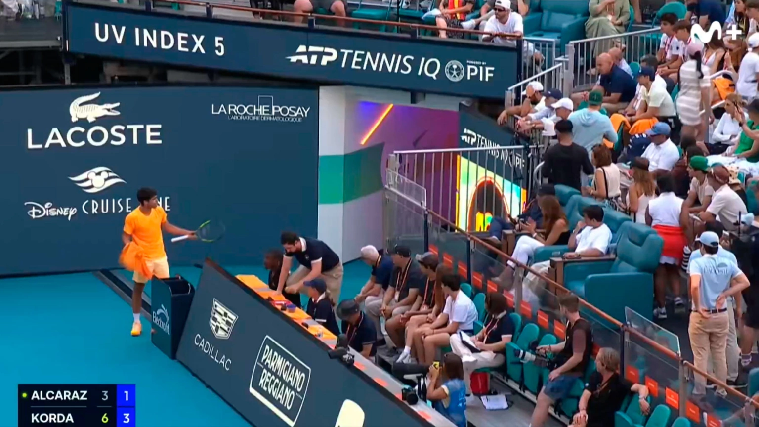 Una de las imágenes del encuentro la captaron nuestros compañeros de Movistar+. En un momento del segundo set, con 6-3 y 2-1 y ventaja para Korda, Alcaraz se dirigió a su staff primeramente en estos términos: "6-3, 6-4; 6-3, 7-5, más no puedo, hoy no puedo más".