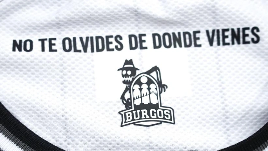 El interior de la tercera equipación también guarda detalles especiales, como el verso 'No te olvides de dónde vienes', de la canción ‘Héroes del sábado’, junto a la ilustración del icónico esqueleto de La M.O.D.A. abrazando el escudo del San Pablo Burgos.