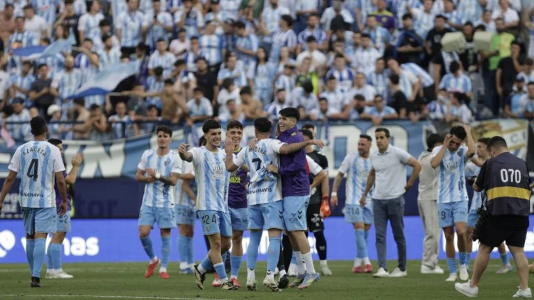 Los jugadores del Málaga celebran la victoria contra el Granada.