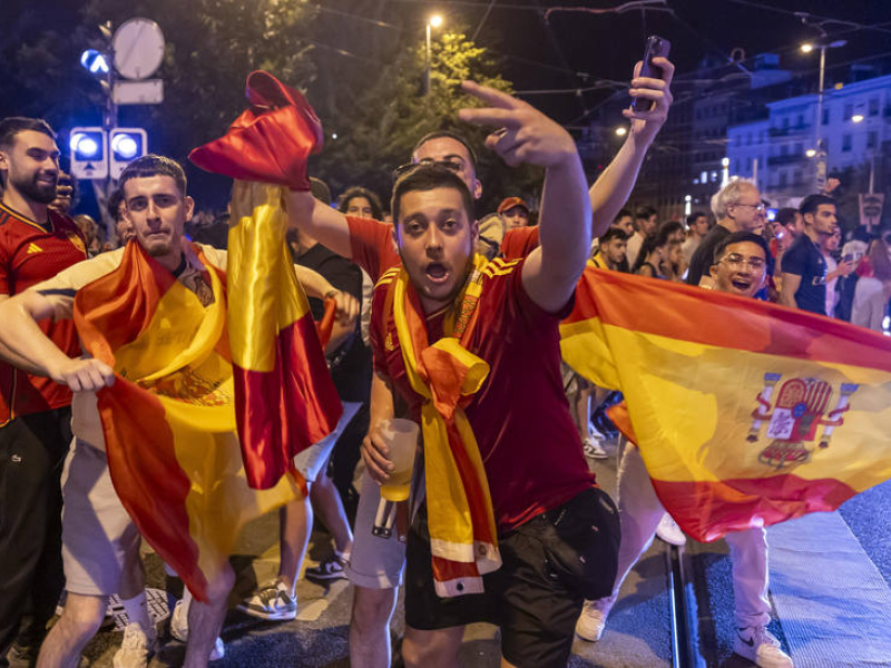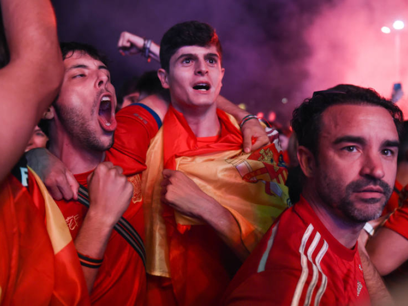 Aficionados españoles celebran el pase a la final de la Eurocopa. | EFE