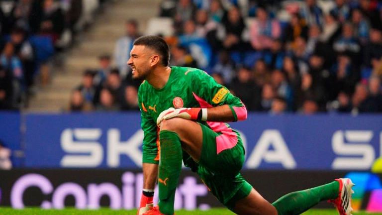 El portero del Girona recibió el impacto de una botella en la visita de su equipo a Cornellá el pasado viernes. Al club perico le aperciben de cierre de su estadio.