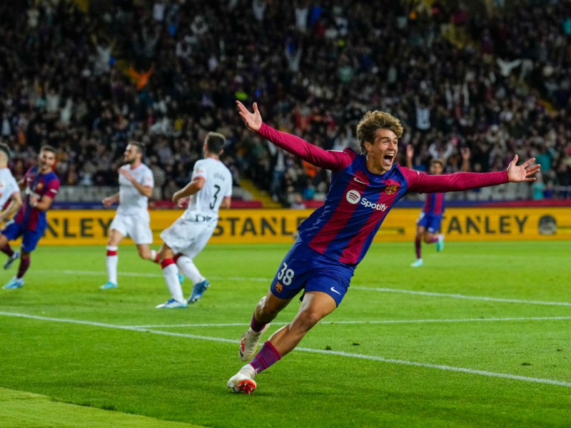 Marc Guiu celebra su gol ante el Athletic en su debut en Primera División
