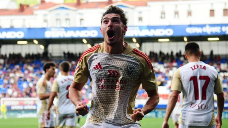 El delantero argentino marcó en el 90' el gol que dio la victoria al Mirandés contra el Eibar. El equipo de Miranda de Ebro es quinto con 65 puntos.