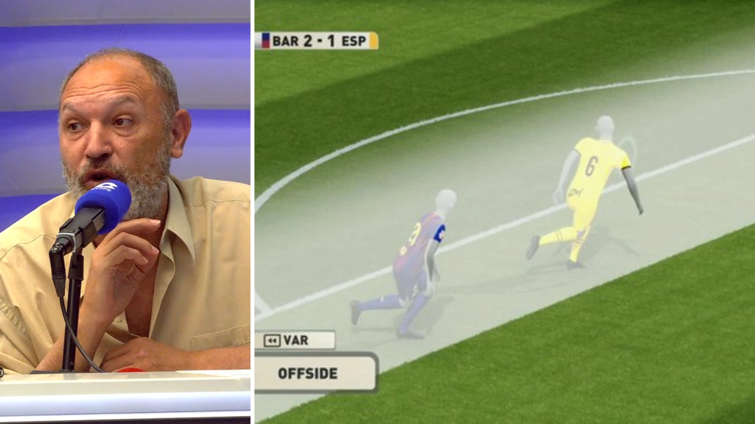 El experto arbitral de Tiempo de Juego no comprendió el tercer gol anulado al Barcelona contra el Espanyol.
