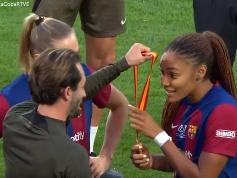 La propias jugadoras azulgranas mostraron su sorpresa al ver que eran los integrantes del cuerpo técnico los encargados de repartir las medallas, que ellas mismas se iban colocando al cuello, en lugar de miembros de la Real Federación Española de Fútbol.