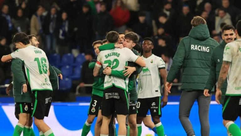 El Racing dio un paso de gigante hacia el ascenso directo después de vencer al Deportivo (0-1) con un tanto de Peio Canales y un notable ejercicio de supervivencia en los últimos minutos, para alejar al tercer clasificado, ahora el Málaga, a seis puntos y asegurase el golaveraje sobre el equipo coruñés.
