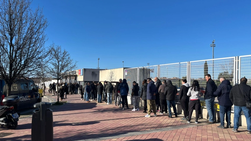 Largas colas en la Ciudad Deportiva del Rayo Vallecano este sábado.