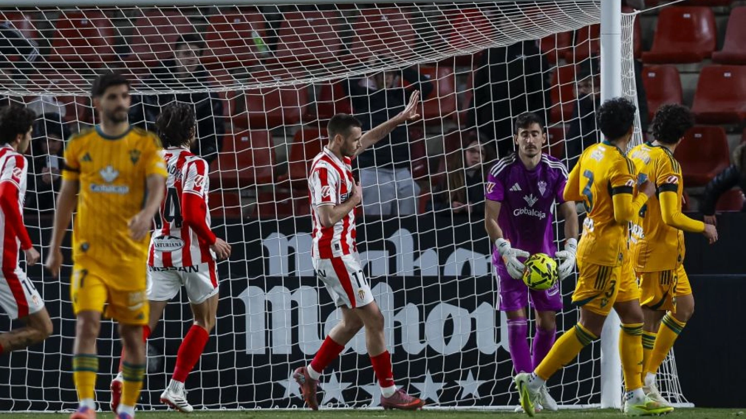 Pero la jugada curiosa sucedió en una cesión atrás de Javi Villar que Mariño tuvo que salvar con la mano para evitar el gol, pero provocó una cesión que el cuadro rojiblanco no aprovechó.