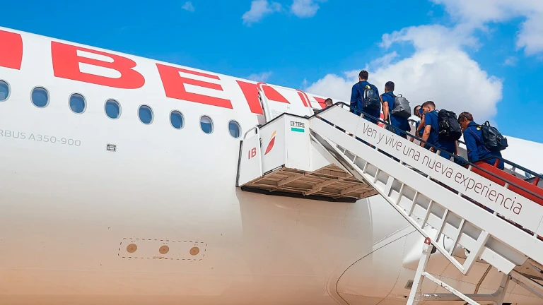Imagen de la selección española de fútbol embarcando en un vuelo de Iberia