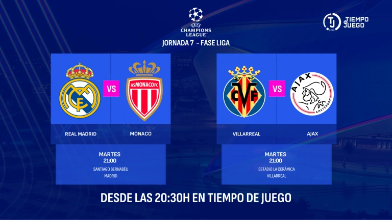 Sigue en directo Tiempo de Juego este martes desde las 20:30h con el Real Madrid-Mónaco y Villarreal-Ajax