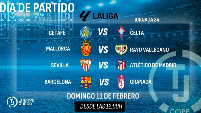 El Atlético de Madrid visitará este domingo al Sevilla FC en un partido correspondiente a la jornada 24 de LaLiga EA Sports, con el propósito entre los visitantes de recuperar la cara alegre que perdió en la ida de las semifinales de la Copa del Rey, mientras que los locales buscarán alargar su leve mejoría con Quique Sánchez Flores. El FC Barcelona recibe este domingo al Granada CF en el Estadi Olímpic Lluís Companys, en un duelo en el que los blaugranas buscan una tercera victoria consecutiva que les permita seguir en la lucha por el título ante un Granada que sigue penúltimo pese a cortar, con un empate, su racha de derrotas. El RCD Mallorca y el Rayo Vallecano enfrentan este domingo sus necesidades en Palma. Por último, Celta y Getafe se citan en el Coliseum en un partido en el que los visitantes tendrán que certificar su reacción en el título doméstico.