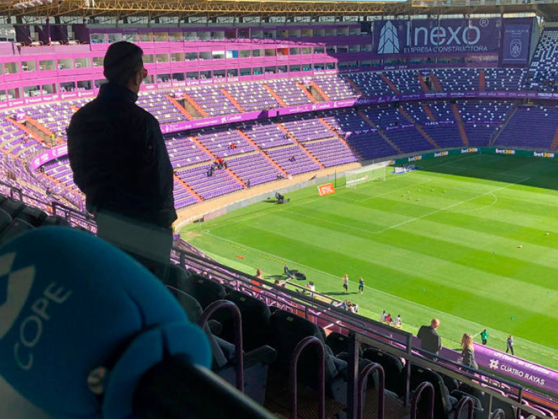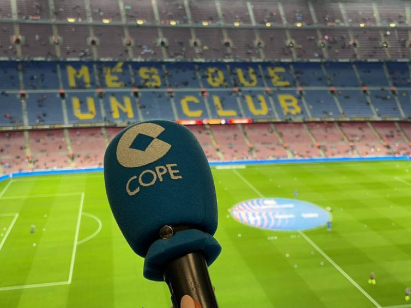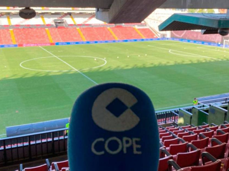 Micrófono COPE Tiempo de Juego en el estadio Nuevo José Zorrilla