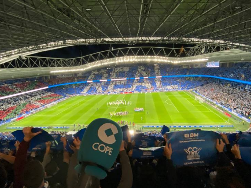 Micrófono de COPE en el Real Arena Anoeta antes del derbi vasco
