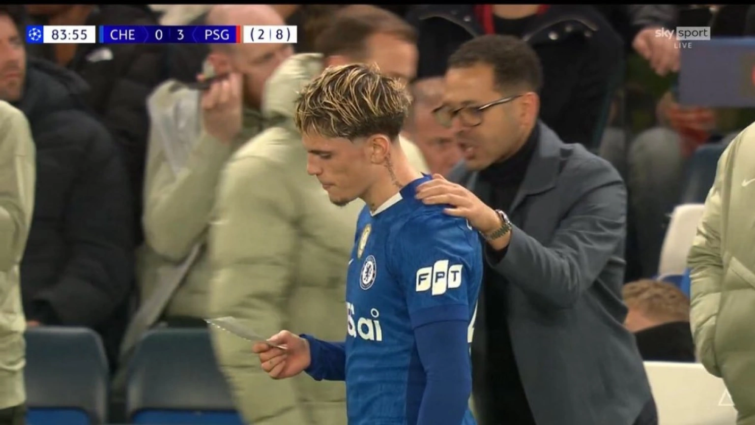 El entrenador del Chelsea le dio una hoja a Garnacho con instrucciones tácticas en el 85.