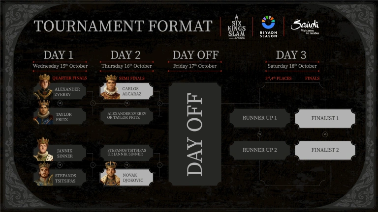Carlos Alcaraz vuelve a las pistas tras los problemas de tobillo que le impidieron participar en el Masters 1000 de Shanghái y lo hará en el prestigioso y millonario torneo de exhibición 'Six Kings Slam' que arranca este miércoles en Arabia Saudí y donde participarán también el italiano Jannik Sinner, el serbio Novak Djokovic, el alemán Alexander Zverev, el estadounidense Taylor Fritz y el griego Stefanos Tsitsipas.