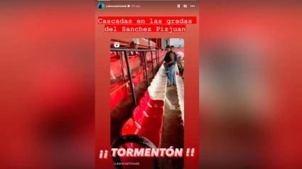 Minutos antes del Sevilla-Real Madrid cayó una tremenda tormenta sobre el Sánchez Pizjuán que llegó a inundar las cabinas de radio como informaron nuestros compañeros desde allí.