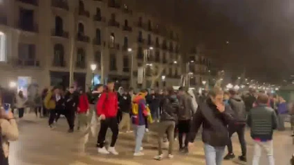 Nuestro compañero Víctor Navarro fue testigo de la celebración de seguidores blaugranas en la Fuente de Canaletas.