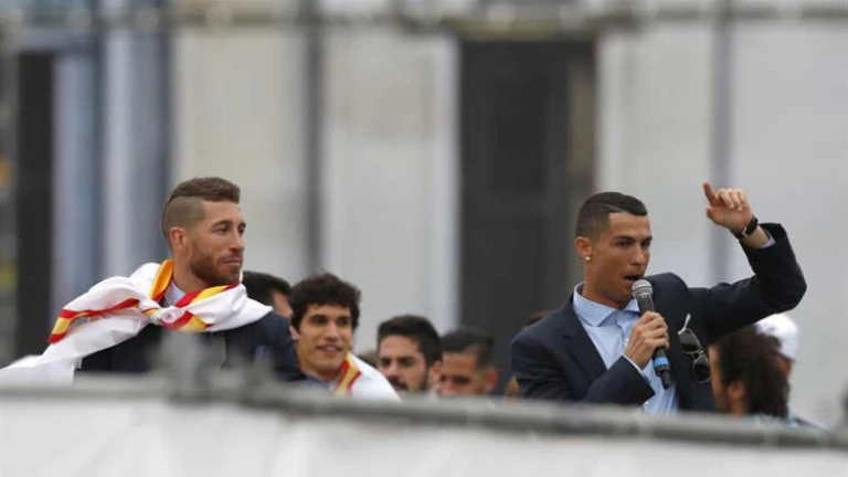 El portugués del Real Madrid, Cristiano Ronaldo, envió un menaje esperanzador a los seguidores que acudieron a la Plaza de Cibeles para celebrar la decimotercera Liga de Campeones: "Gracias, chicos, y hasta el próximo año".