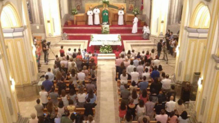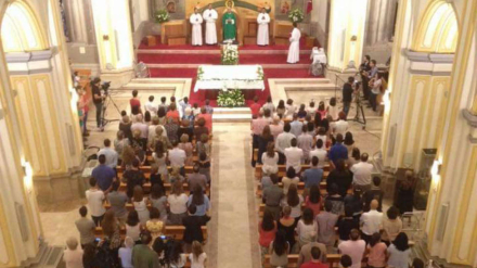 El párroco D. Manuel Ros Cámara dirige desde la iglesia de Santa Eulalia la oración, que podrá escucharse y rezarse a diario desde la web de COPE