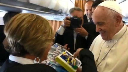 No es la primera vez que Eva Fernández, corresponsal de COPE en el Vaticano e Italia, sorprende al Pontífice con algunos regalos y cartas que le llegan desde España invitando a Francisco a venir a nuestro país.