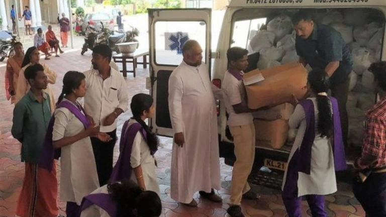 A pesar de que el Gobierno de Kerala intervino inmediatamente después de las lluvias, sobre todo en labores de rescate y distribución de artículos de primera necesidad, los servicios de emergencia se han visto desbordados. Por ello, el Centro Sanitario de San Juan, socio local de Manos Unidas, y las tres diócesis de los distritos de Allepey y Pathanamthitta decidieron, desde el primer momento, aunar esfuerzos para la atención inmediata de la población afectada. En este periodo abrieron hasta 63 campamentos en parroquias, colegios y otros centros de la iglesia, donde atendieron a más de 20.000 personas que habían perdido sus casas o cuyas vidas podían estar en peligro.