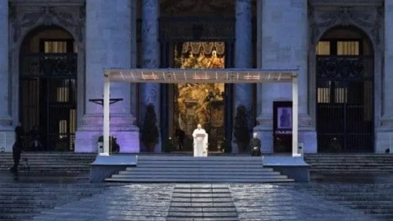 Reflexionando sobre el Evangelio de San Marcos, el Papa habla de la "tempestad": "La tempestad desenmascara nuestra vulnerabilidad y deja al descubierto esas falsas y superfluas seguridades con las que habíamos construido nuestras agendas, proyectos, rutinas y prioridades". Para Francisco, la tempestad también nos muestra "cómo habíamos dejado dormido y abandonado lo que alimenta, sostiene y da fuerza a nuestra vida y a nuestra comunidad" y pone al descubierto "todas esas tentativas de anestesiar con aparentes rutinas "salvadoras", incapaces de apelar a nuestras raíces y evocar la memoria de nuestros ancianos, privándonos así de la inmunidad necesaria para hacerle frente a la adversidad". Pero esta tempestad también nos quita el "maquillaje" de los estereotipos con los que disfrazábamos nuestros egos siempre pretenciosos de querer aparentar y deje al descubierto "esa (bendita) pertenencia común de la que no podemos ni queremos evadirnos; esa pertenencia de hermanos".