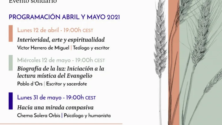 Las Franciscanas Hijas de la Misericordia retoman el espacio de Conferencias en torno al mundo interior con la programación de abril y mayo. En esta ocasión, Víctor Herrero, teólogo y escritor, Pablo d?Ors, escritor y sacerdote, y Chema Solera, psicólogo y humanista, compartirán sus conocimientos y experiencias.