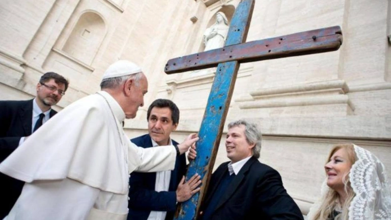 El 9 de abril de 2014, la fundación italiana Casa del Espíritu y de las Artes presentó al papa una cruz hecha con tablas de barcos naufragados frente a Lampedusa. El papa la bendijo y les encargó: "Llevadla por todas partes". Desde entonces, esta cruz ha recorrido varias diócesis de Italia, estuvo en el Vaticano en el Jubileo de los Emigrantes (17 de enero de 2016), ha visitado Lourdes, y ha sido acogida a lo largo de este 2017 por varias diócesis españolas.