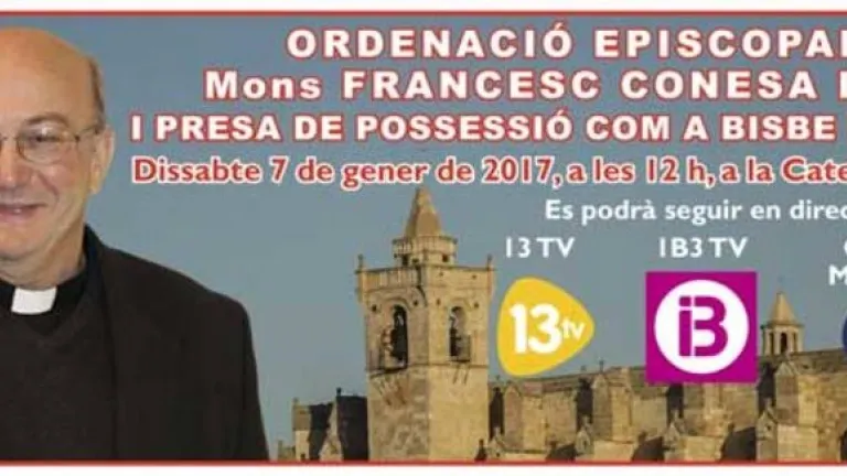 Francesc Conesa recibirá la ordenación episcopal y tomará posesión como nuevo Obispo de Menorca en una Eucaristía celebrada en la Catedral de la ciudad el sábado 7 de enero, a las 12:00 horas. La Santa Misa podrá seguirse en directo en 13tv.