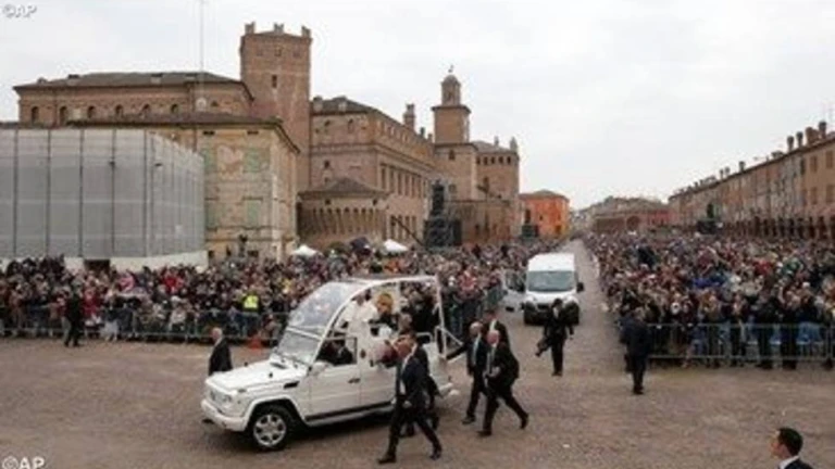 Una vez finalizado el encuentro con el Clero, Francisco recorrerá 23 kilómetros en coche para encontrarse con la Comunidad de Mirandola en la catedral de la localidad. Allí el Santo Padre dedicará unas palabras de ánimo a la población de Mirandola, cuyo centro histórico fue también fuertemente golpeado por el terremoto de mayo de 2012. Y terminará su visita con una ofrenda floral al monumento dedicado a las víctimas del seísmo, situado en la Parroquia de la localidad.