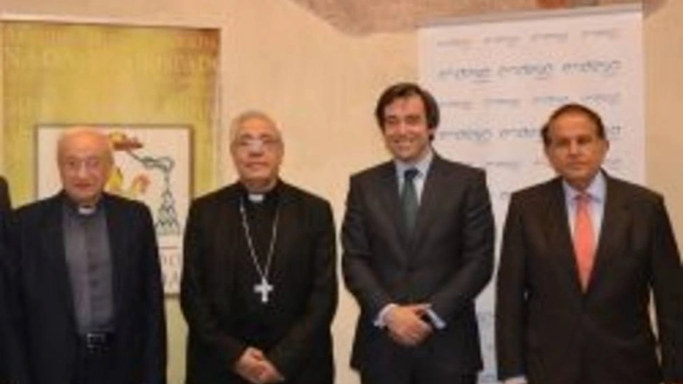 El Arzobispo metropolitano de Granada, Mons. Francisco Javier Martínez Fernández, junto con el director general de la Fundación Endesa, Carlos Gómez-Múgica, han firmado el 21 de mayo, en Granada, el convenio para la iluminación artística de la fachada de la Capilla Real de la ciudad.