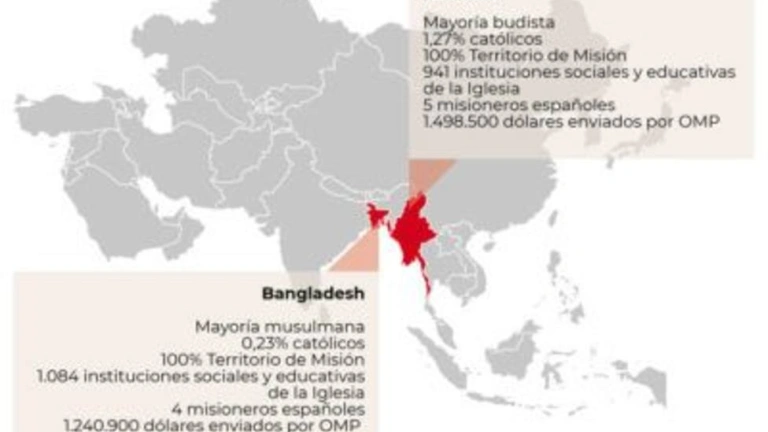 Desde este lunes 27 de noviembre, el Papa Francisco visitará Myanmar y Bangladés, en el que es su cuarto viaje apostólico al continente asiático. Dos países con realidades muy diferentes, donde hay misioneros españoles entregando la vida.