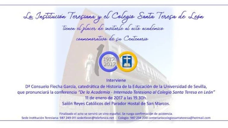 La Institución Teresiana y el Colegio Santa Teresa de León iniciarán hoy miércoles día 11 los actos del programa con el que la lo largo de todo este año 2017 se conmemorará el centenario de la presencia de esta entidad cuya fundación promoviera directamente en León San Pedro Poveda.