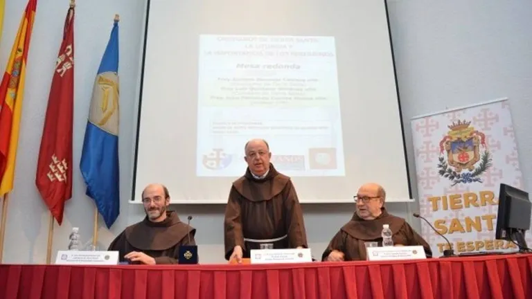 La recibía ayer su director, P. Miguel Ángel Escribano, al finalizar una mesa redonda titulada: "Cristianos en Tierra Santa. Liturgia de los santos lugares y la importancia de las peregrinaciones". En ella participaron Enrique Bermejo Cabrera, profesor del Estudio Bíblico de Jerusalén; Luis Quinta Giménez, Comisario de Tierra Santa en la Provincia de la Inmaculada; y Juan Fernando Cuenca Molina, profesor de Sagrada Escritura en el Instituto Teológico de Murcia OFM y guía de peregrinos.