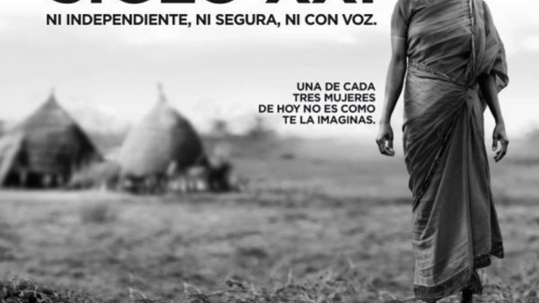 En los próximos años, Manos Unidas seguirá teniendo como objetivo acabar con la pobreza y el hambre en el mundo, pero este primer año del Trienio "Promoviendo los Derechos con Hechos" (2019-2021) quiere centrarse en la denuncia de una pobreza muy concreta: la de la mujer. Así, como muestra su cartel en blanco y negro, la ONG nos invita a que fijemos nuestra mirada en las mujeres de otros países y con tres negaciones provocadoras (ni independiente, ni segura, ni con voz), nos invita a reflexionar sobre si existe una igualdad real de oportunidades entre hombres y mujeres en todos los lugares del mundo.