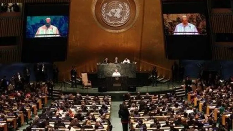 Reiterando lo que dijo ante la Asamblea General de la ONU, el Papa recuerda que el 25 de septiembre de 2015, subrayó que "el Preámbulo y el primer artículo de la Carta de las Naciones Unidas indican los cimientos de la construcción jurídica internacional: la paz, la solución pacífica de las controversias y el desarrollo de relaciones de amistad entre las naciones".
