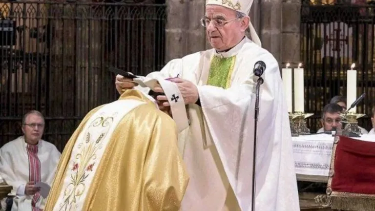 El arzobispo de Barcelona Mons. Juan José Omella, cabeza de la provincia eclesiástica metropolitana del mismo nombre, recibió el palio este sábado 3 de diciembre en su catedral de la Santa Cruz y Santa Eulàlia.