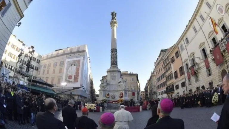 Oración a la Virgen María en la Plaza de España en Roma