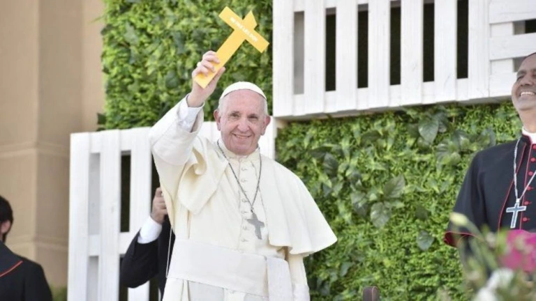 a penúltima cita del tercer día del Papa Francisco en Chile, en este miércoles 17 de enero, fue el festivo encuentro con la juventud que tuvo lugar en el Santuario Nacional de Maipú. El encuentro tuvo tres momentos, a saber, el saludo de un joven al Papa con la presentación del Símbolo de los Jóvenes para el Sínodo del 2018, la lectura del Evangelio, y por último el discurso del Santo Padre con el rezo del Padrenuestro, la bendición final y la deposición de un Rosario de oro a la imagen de la Virgen del Carmen.