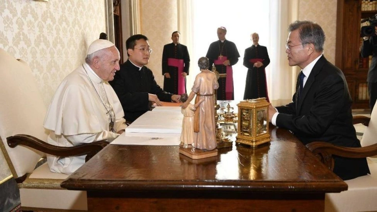 Asimismo, se ha expresado gran aprecio por el esfuerzo común de favorecer toda iniciativa útil que consienta superar las tensiones que existen todavía en la península de Corea, para abrir una nueva estación de paz y desarrollo.